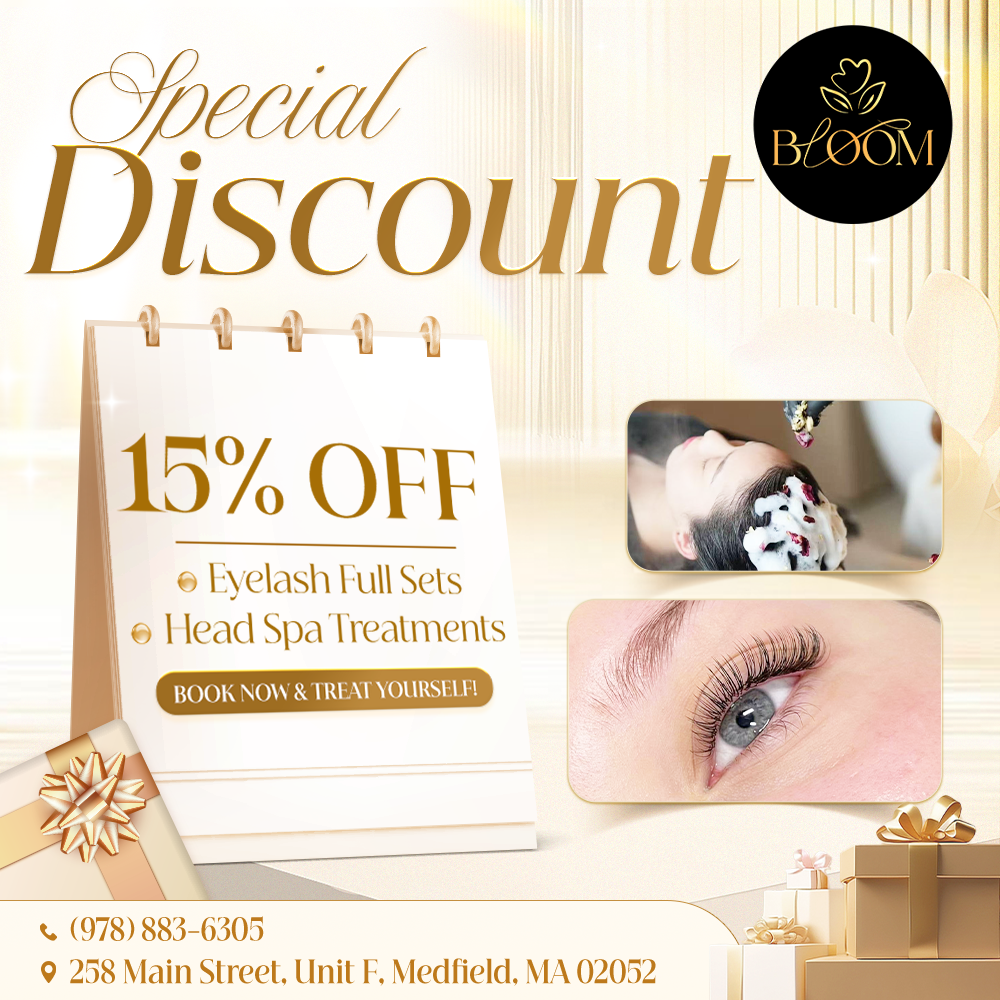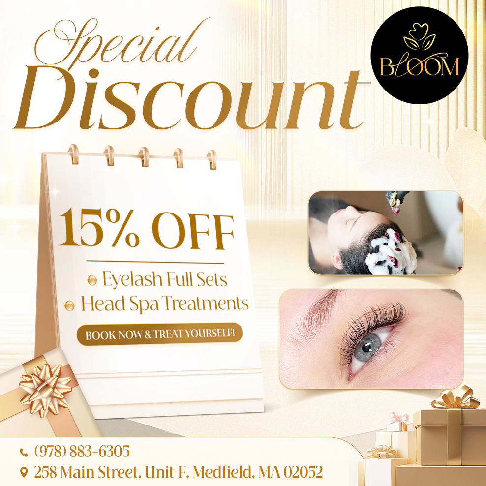 Bloom Lashes and Head Spa is Medfield’s premier beauty and wellness destination, offering an innovative blend of scalp treatments and comprehensive beauty services. Located at 258 Main Street, Unit F, Medfield, MA 02052, we specialize in therapeutic scalp care that detoxifies, hydrates, and invigorates while promoting healthy hair growth, alongside rejuvenating facial treatments, precision eyelash extensions, and professional waxing services.